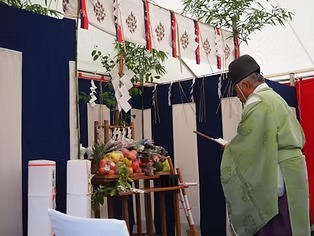 工事が無事に終わるように神主を招いて安全祈願をする儀式のことです。