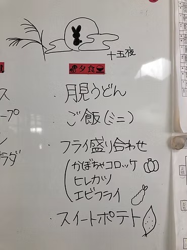 その他食堂のメニューボードにもお月見のイラストが描いてあったので、識字ができない方も雰囲気を感じることができたのではないでしょうか?