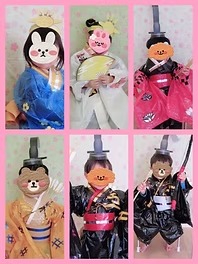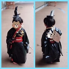 小道具の弓矢や刀を持って凛々しい顔の男の子たち♪