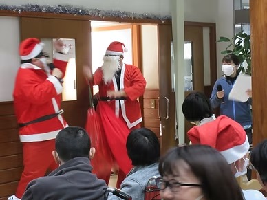 新型コロナウィルスの感染予防をしながら「レクリエーションをやって、サンタが登場してみんなにプレゼントを配る」というところまでは例年通りの実施でしたが、