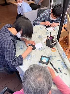 タウンの利用者さんたちもチョークアートを体験させていただきました。