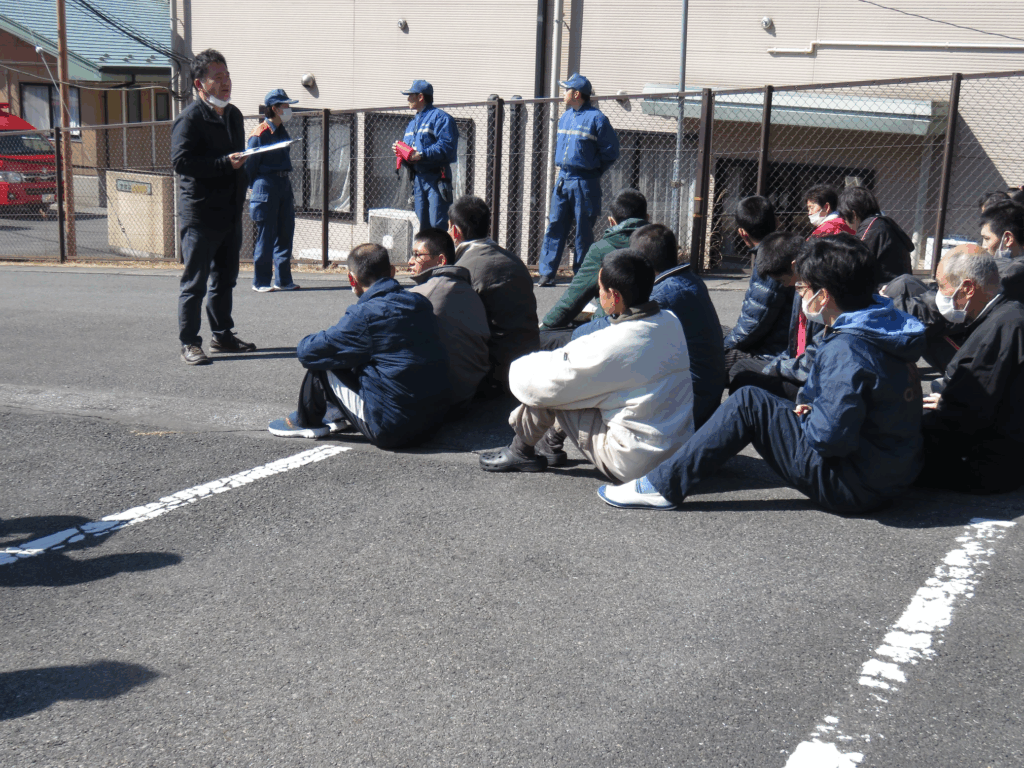 出火場所を想定して消防署へ通報、建物からの避難をした後に消防署の方より総評をいただきました。