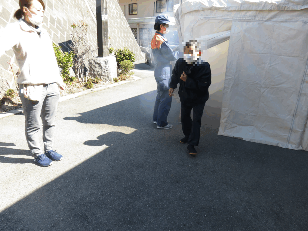 訓練と言うことで、職員も利用者の皆さんの無事にテントから出てこれましたが、