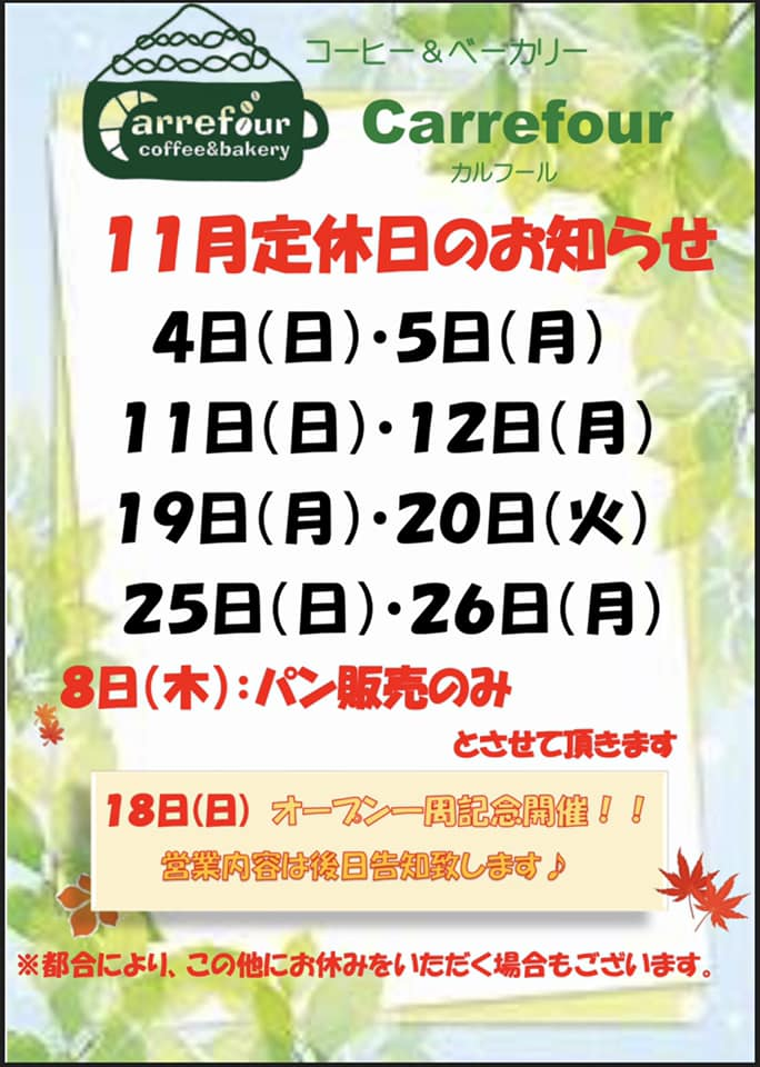 さて、カルフールから11月のお知らせです。