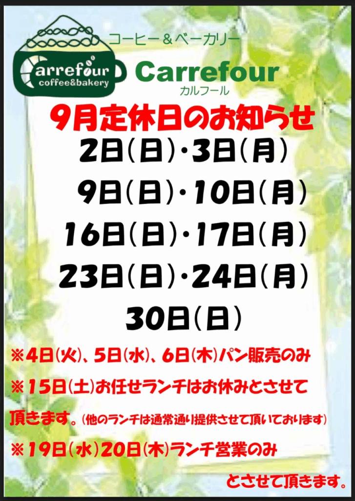 カルフール 9月のお知らせ