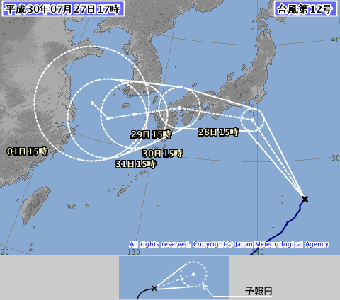 週末にかけて台風12号が日本列島に接近するようです