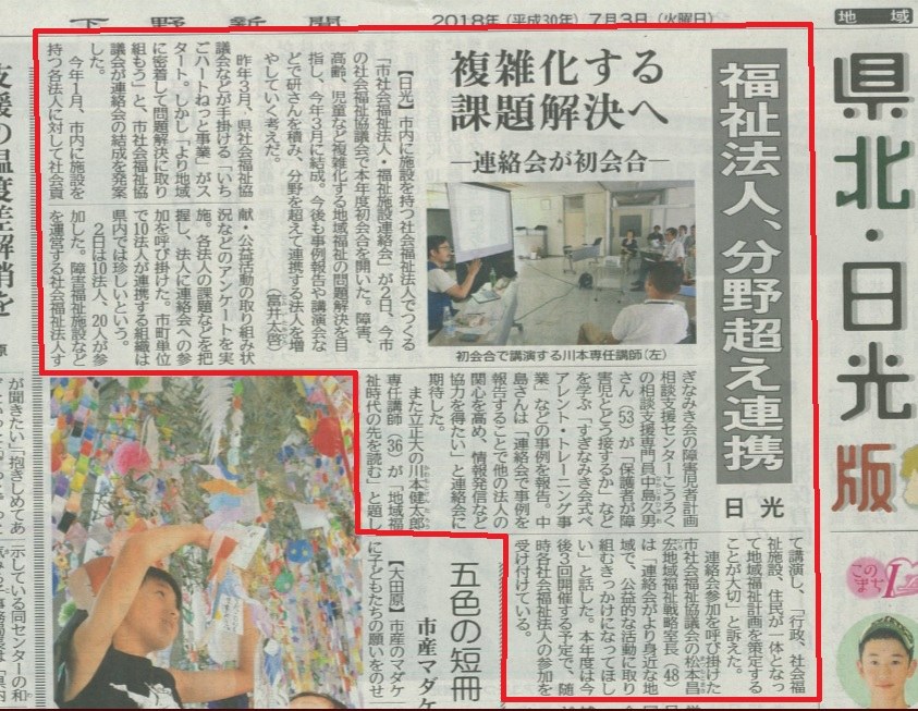 先日のことですが、相談支援事業所こうろくの中島相談員がインタビューを受けた内容が下野新聞に掲載されました。