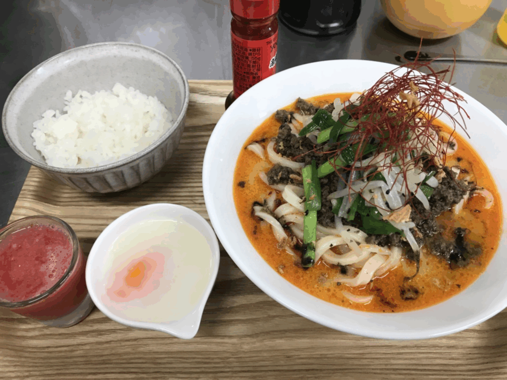 担々うどんの挽肉がスパイシー!!(なはず)