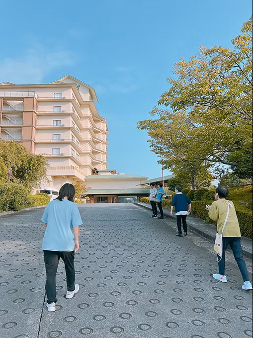 翌朝はホテル周辺を散歩にでかける利用者さんの姿も。