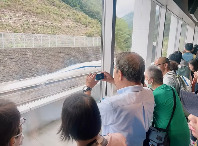 一瞬で駆け抜けていくリニアに「速い!」「全然見えない!」と大興奮でした。