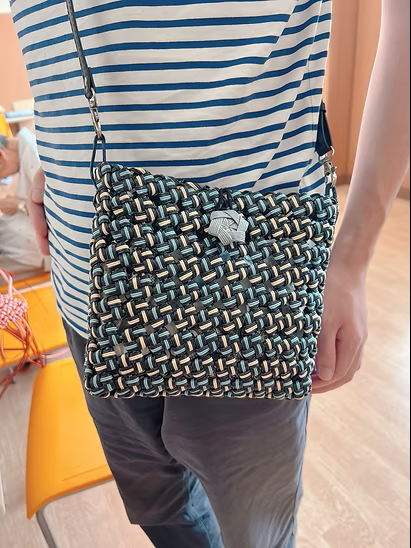 利用者さんがコツコツと作っていたバッグが完成したのでお披露目したいと思います!