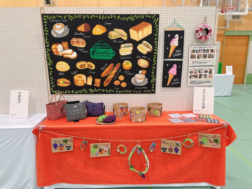 また、クラフトバンドクラブで作ったバッグやリースも展示しました。