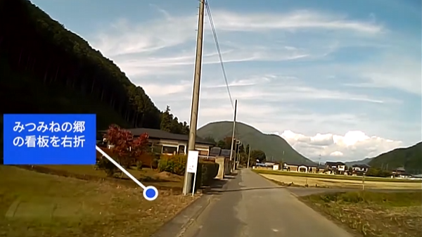 「みつみねの郷」の看板が見えたら右折します
