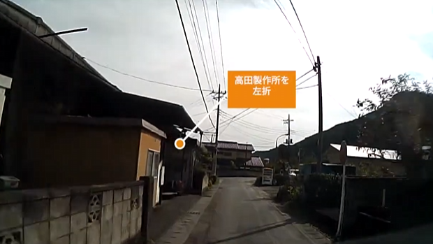 高田製作所の前で左折し、道なりに進むと駐車場が見えてきます